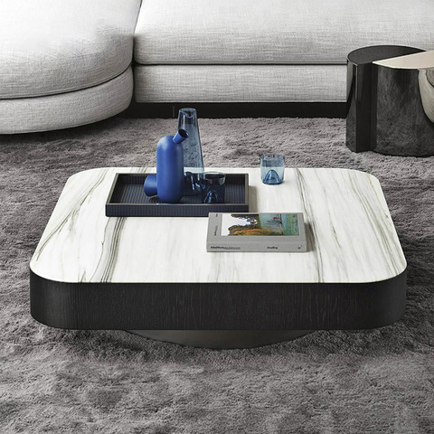 OKF özel siyah katı ahşap sehpa Modern sıcak satış lüks yüksek sınıf doğal mermer taban Villa ApartmentLiving odası kullanımı